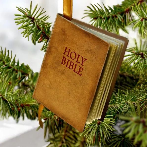 The hardcover is designed to resemble an antique book, made from paper and card stock, with a sealer applied to preserve its vintage appearance. A gold satin ribbon bookmark is also included, doubling as a loop for hanging the miniature Bible as an ornament on your Christmas tree.