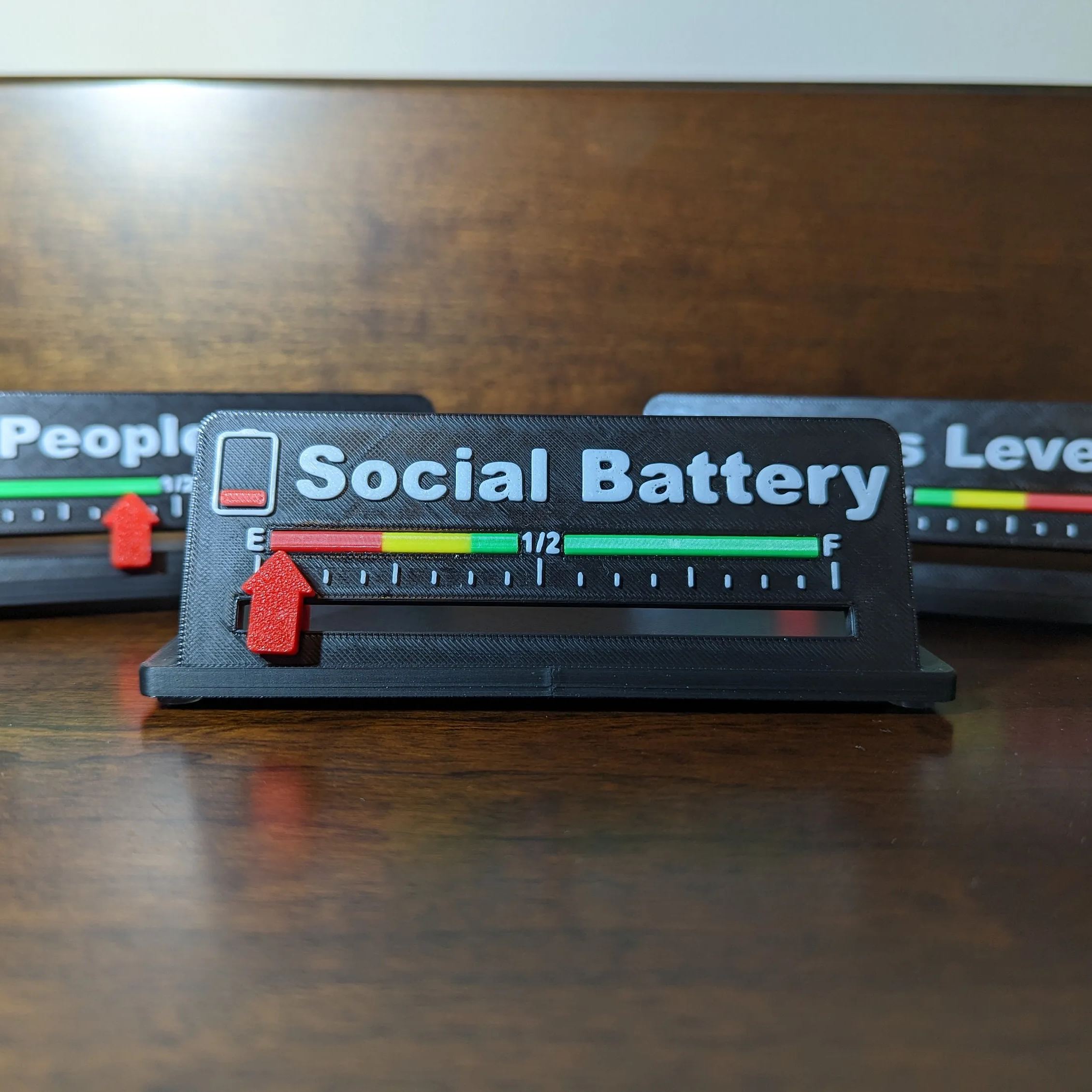 How is your mood? Let your friends know with this Social Battery sign or People Meter. Just slide the indicator to your desired level. Fun little desktop indicator for the non people person!