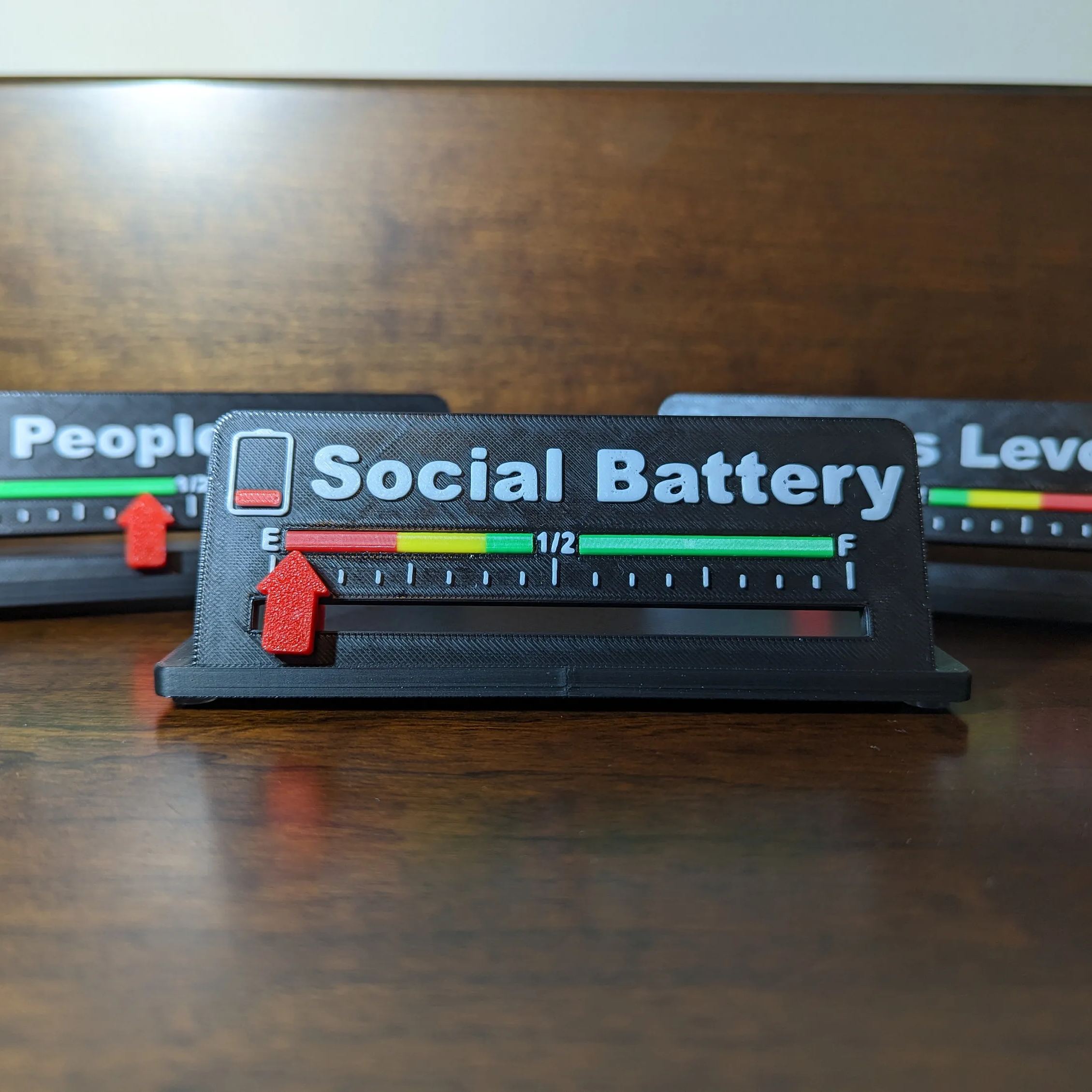 How is your mood? Let your friends know with this Social Battery sign or People Meter. Just slide the indicator to your desired level. Fun little desktop indicator for the non people person!