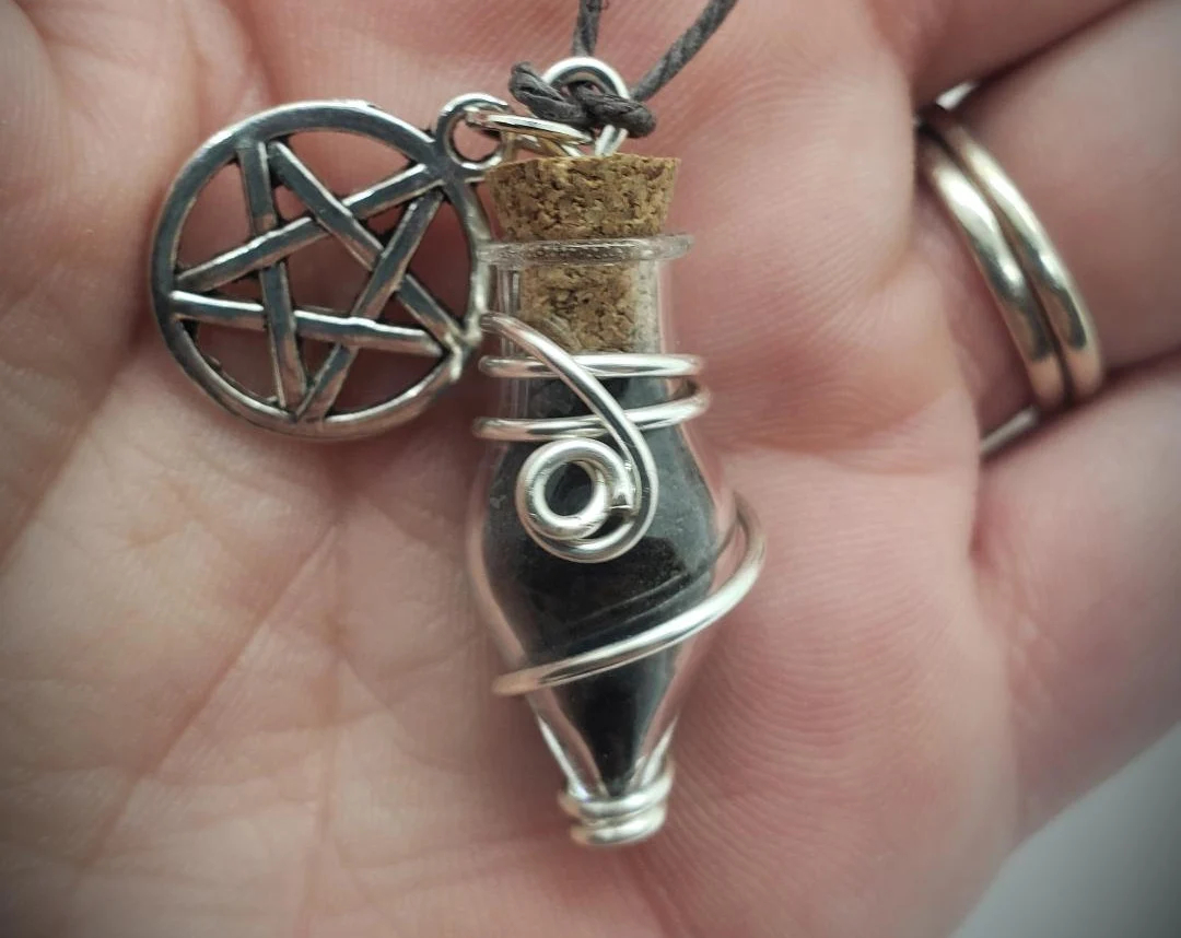 Black Salt is used for protection, removing bad spirits, banishing evil, removing and preventing hexes/jinxes, and keeping away all evil forces. It is typically used it Witchcraft, Hoodoo, voodoo, and Wicca religions. Wearing this bottle around your neck will create a boundary for anyone who wishes you harm.