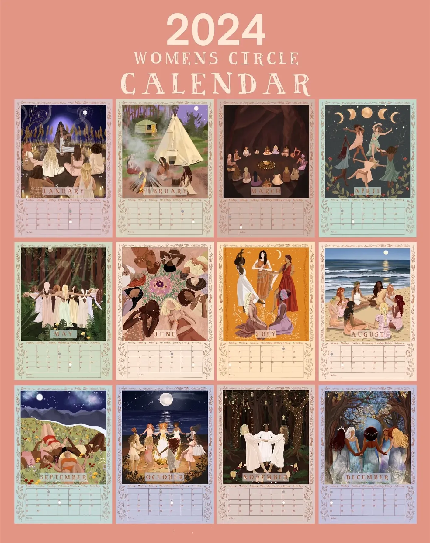 Elevate your year with the 2024 Women's Circles Calendar, a beautiful and empowering tribute to the divine feminine and the strength of community. 🌙🎨📅