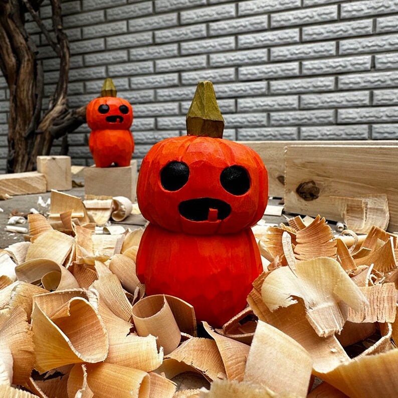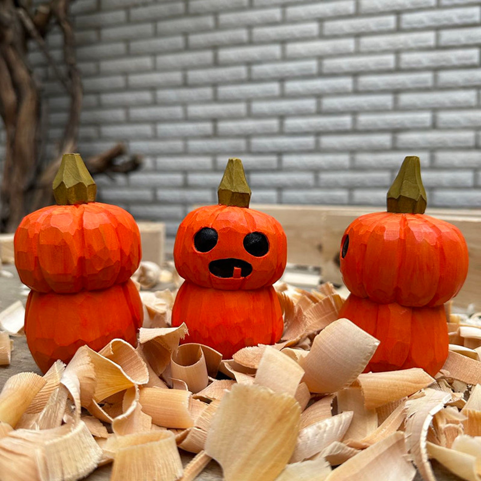 🎉Enhance your Halloween decor with our exquisite Handmade Wooden Carving Pumpkin Sculpture.